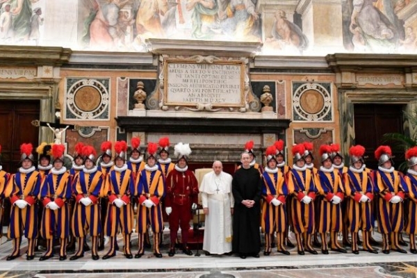 மே 6 ஆம் தேதி சனிக்கிழமை வத்திக்கானின் சாந்தா கிளமெந்தினா அறையில் வத்திக்கானின் சுவிஸ் மெய்க்காப்பாளர்களின் அதிகாரிகள் மற்றும் உறுப்பினர்களைச் சந்தித்த போது இவ்வாறு கூறிய திருத்தந்தை பிரான்சிஸ் அவர்கள், குடும்ப வளர்ச்சிக்கான இடமாகவும், வாழ்க்கைக்குப் பயனுள்ளவற்றைக் கற்றுக்கொள்ளும் இடமாகவும் மெய்க்காப்பாளர்கள் அமைப்புத் திகழ்கின்றது என்றும் எடுத்துரைத்தார்.