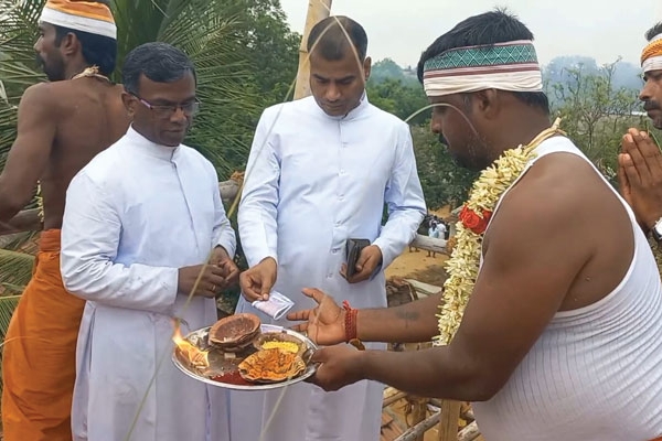 அரியலூர் மாவட்டம் ஜெயங்கொண்டத்திற்கு அருகில் உள்ள நடுவலூர் கிராமத்தில் இந்து கோவிலில் நடந்த கும்பாபிஷேக விழாவில், யாரும் எதிர்பார்க்காத நெகிழ்ச்சியான நிகழ்வு நடந்தது. புனித சூசையப்பர் ஆலயத்தில் பணிபுரியும் அருள்பணியாளர்கள் இராபர்ட், ஜோசப் ஆகிய இருவரும் அதில் கலந்துகொண்டு கோவிலுக்குத் தங்கள் காணிக்கைகளை வழங்கினார்கள்.
